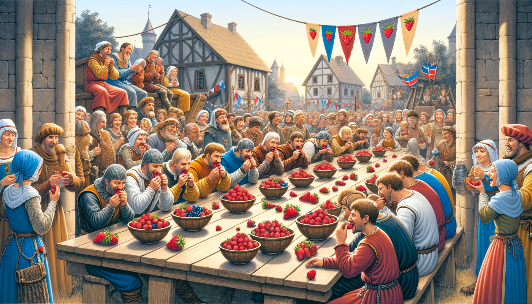 In our town, strawberries and berries are a big part of our lives. A lot of what we do connects to berry growing. One of our favorite activities we have here is berry and pie eating contests. Everyone through town and of different ages love competing in these contests held often in our town square. See who can munch down on a basket of berries first or finish a blueberry pie first, win prizes such as coins, and a basket of more berries to munch on later!